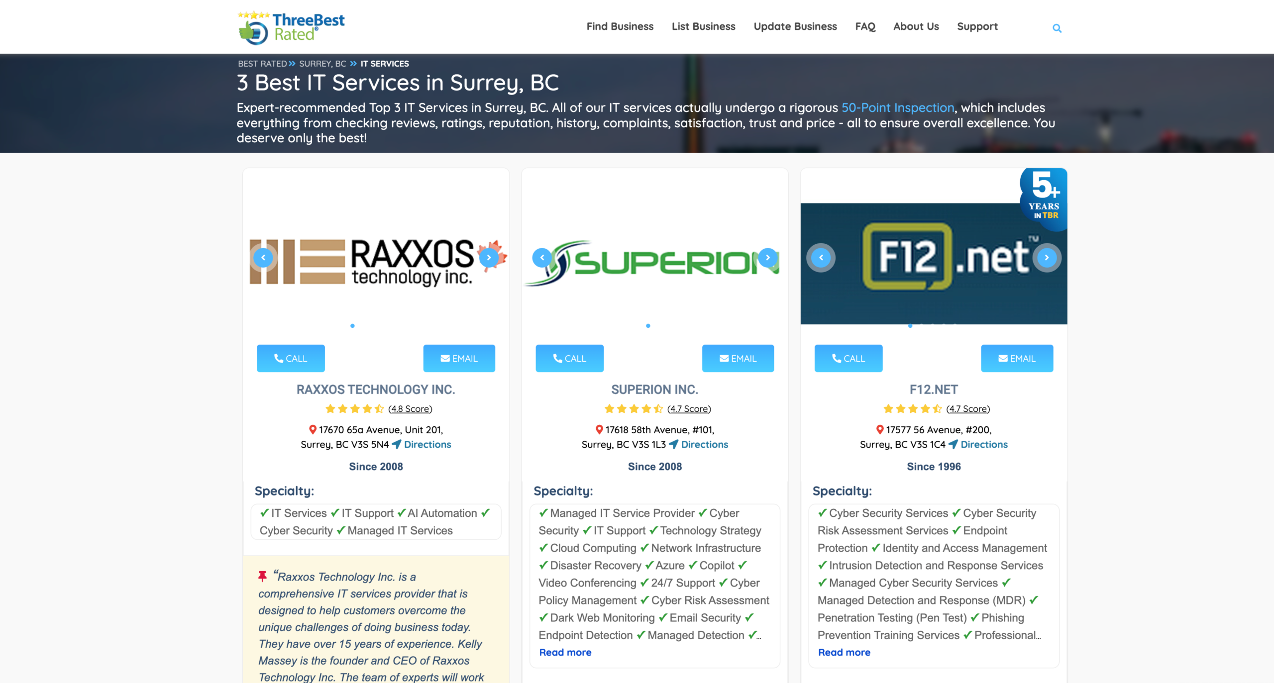 Raxxos Technology Inc. has been ranked the #1 IT Services provider in Surrey, BC by ThreeBestRated.ca, a trusted independent review platform that evaluates local businesses across Canada.